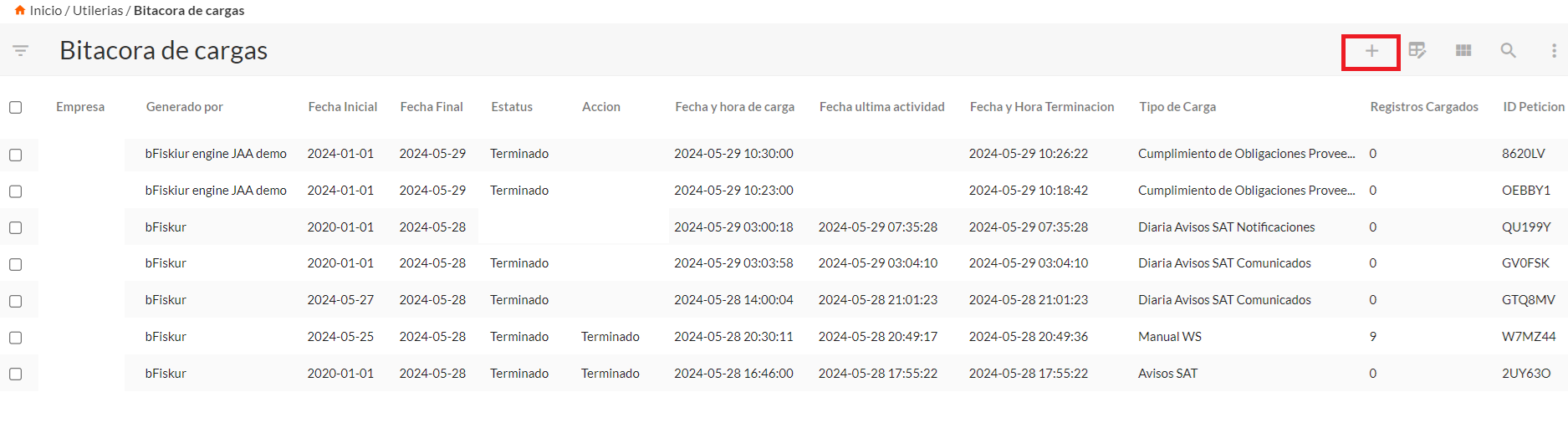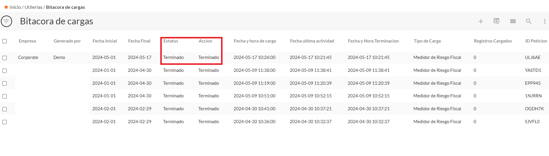 De acuerdo al universo de CFDI´s de tu empresa, la utilería tardara varios minutos, hasta que la bitácora este con estatus terminado.