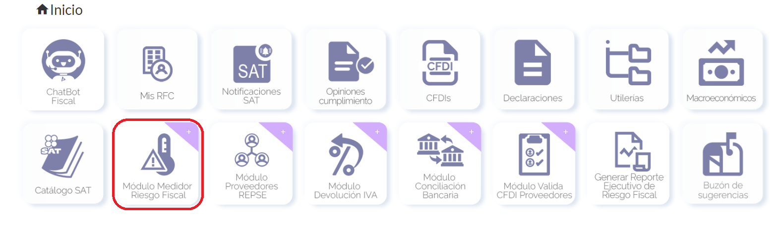 Volvemos al menú principal y damos clic en la bóveda de medidor de riesgo fiscal.