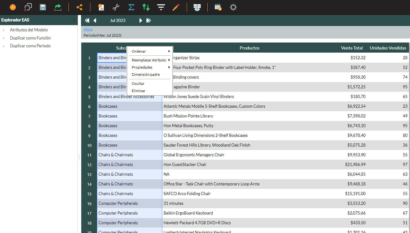 - Eliminar: Eliminar la dimensión padre o dato del agrupador.