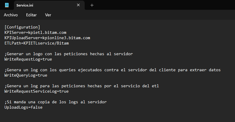 | UploadLogs=false | Obliga al ETL a no enviar los logs al servidor si no que los deja de manera local en el servidor donde se ejecuta el ETL |