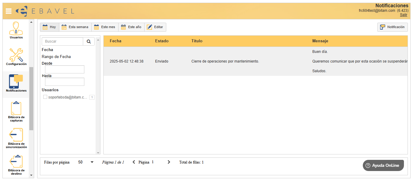 De regreso a la pantalla anterior podrá observar un listado de los mensajes enviados: