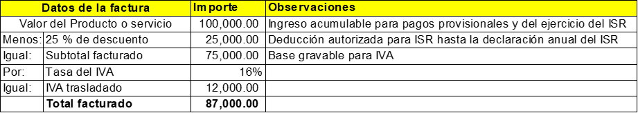 - Artículo 25, fracción I de la LISR: Establece que los descuentos y bonificaciones son deducciones autorizadas que se aplican en la declaración anual, no en pagos provisionales.